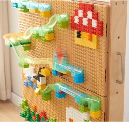 Scopri il mondo della creazione con blocchi Masterkidz. I bambini possono liberamente assemblare i loro modelli e piste per biglie: