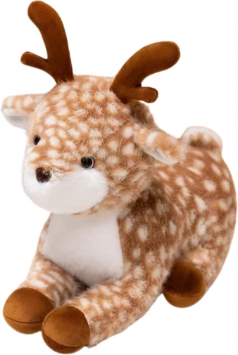 Questo cervo di peluche è stato progettato con l'idea del fascino naturale della natura selvaggia, il suo aspetto evoca gli abitanti della foresta e può servire come ispirazione per racconti di storie, giochi educativi e lo sviluppo della fantasia dei bambini. Grazie alle dimensioni compatte e alla posizione seduta confortevole, è ideale per essere posizionato su uno scaffale, su una poltrona o sul letto dei bambini. Si adatta perfettamente anche a decorazioni festive o tematiche come decorazione d'interni o come scena per giochi.