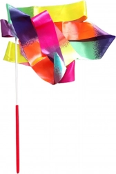 Realizzato in materiale sintetico leggero ma resistente con una leggera lucentezza, è resistente all'annodamento e reagisce perfettamente al movimento. Al nastro è attaccata un'asta con un manico colorato e un giunto flessibile con una molla che previene la torsione e permette manovre fluide.
