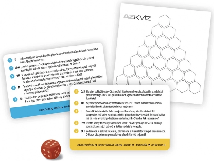 Questa versione funziona benissimo da sola, ma puoi usarla anche come espansione della versione da tavolo di AZ quiz. La confezione include tutto il necessario, comprese schede segnapunti con tabellone di gioco e un dado segnapunti. La qualità della realizzazione e la produzione nella RC garantiscono lunga durata e un gioco confortevole anche in viaggio.
