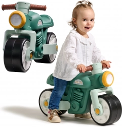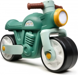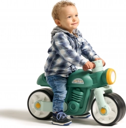 La moto a spinta Falk in versione Retro di colore verde è perfetta sia per l'uso interno che esterno. È prodotta prestando attenzione alla sicurezza e al comfort del piccolo utente.