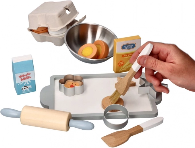 Questo set riccamente accessoriato per il gioco del pasticcere offre ai bambini un’esperienza autentica in cucina. Grazie al resistente legno e all’acciaio inossidabile, i singoli pezzi sono sicuri, piacevoli al tatto e facili da mantenere. I bambini potranno provare a mescolare, stendere l’impasto, ritagliare e decorare i “biscotti” – proprio come gli adulti.