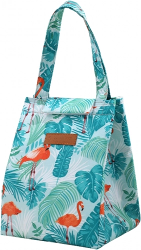 Borsa termica per pranzo con motivo a foglie e fenicotteri 25 cm