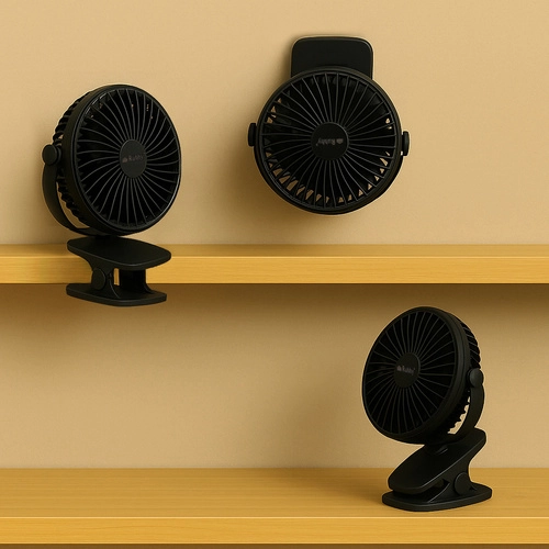 Il ventilatore wireless Ruhhy è progettato con l'versatilità e l'efficienza in mente. Grazie alla sua clip robusta e base antiscivolo, può essere facilmente fissato su superfici diverse senza timore di spostarsi o cadere.