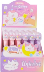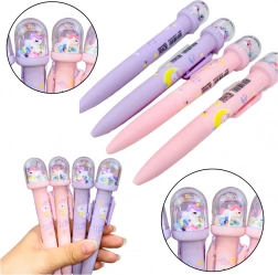 La penna a sfera adorabile è dotata di una figura posizionata in una cupola trasparente con stelle galleggianti, brillantini e altri dettagli decorativi. Crea un design unico che attira ogni piccolo creativo.