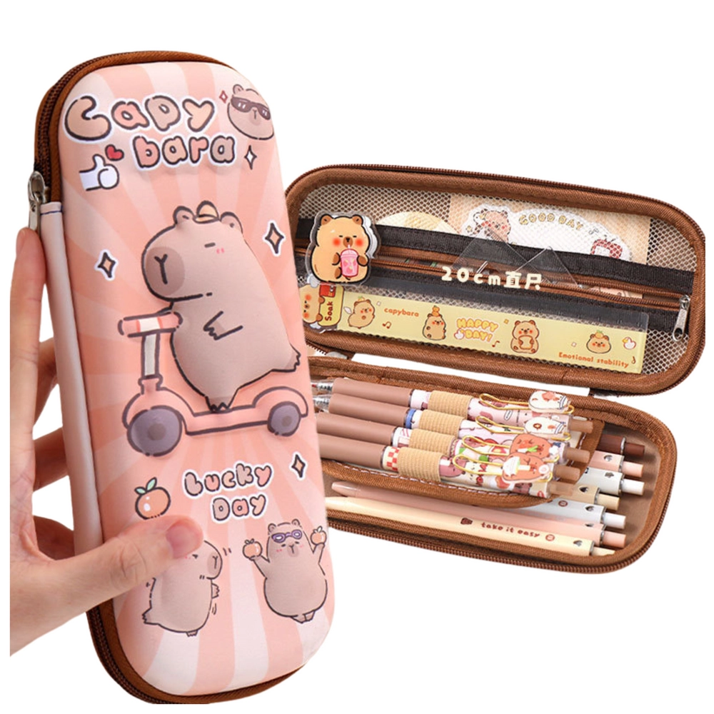 Questo elegante astuccio scolastico con un'immagine adorabile di una capibara su un monopattino è ideale per gli amanti degli animali e dello stile creativo. Si mantiene in calde tonalità pastello e colpisce per il design innovativo.