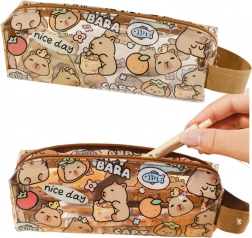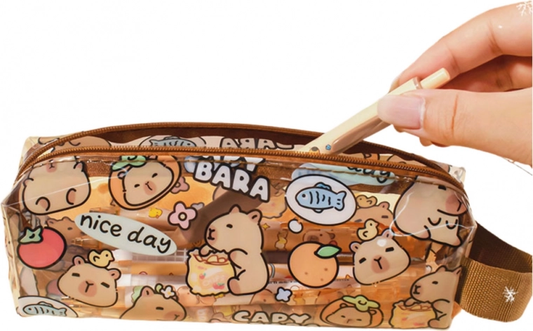 Questo astuccio scolastico è realizzato in PVC resistente e impermeabile, il che lo rende perfetto per l’uso quotidiano a scuola e nelle attività del tempo libero. Il materiale trasparente con stampa colorata consente di vedere facilmente all'interno. L'astuccio è dotato di un manico laterale marrone per un facile trasporto.