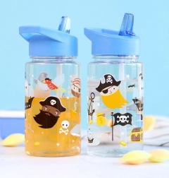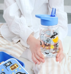 La bottiglia per bambini con stampa di pirati offre una perfetta combinazione di divertimento e funzionalità. Con il suo aiuto, puoi creare un set completo con zaino e scatola per merenda nello stesso design. La bottiglia non è adatta per liquidi bollenti o caldi. Deve essere lavata a mano, così come il coperchio e la cannuccia. Non inserire nel microonde né nella lavastoviglie.