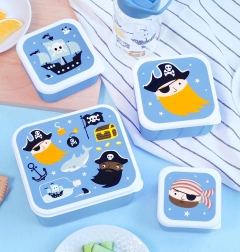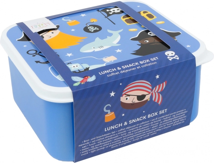 Set di quattro scatole da pranzo con design dei pirati, ideale per pranzi e merende. Le scatole sono facili da aprire, chiudere e si possono impilare per risparmiare spazio.