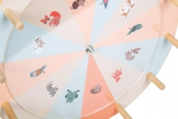 Scopri il gioco multifunzionale che unisce il divertimento all'apprendimento. La ruota a pendolo è ideale per l'uso durante le feste, negli asili o a casa. La struttura portatile permette un facile posizionamento ovunque, magari sul tavolo.