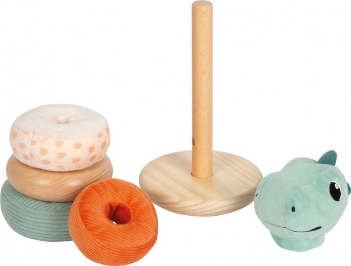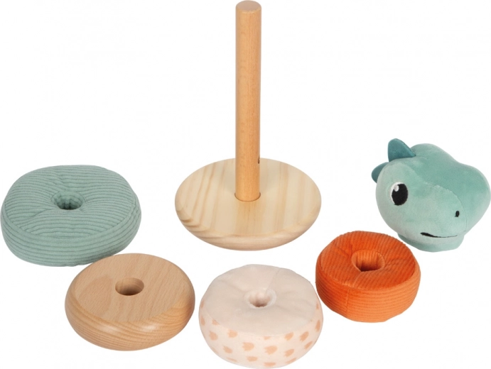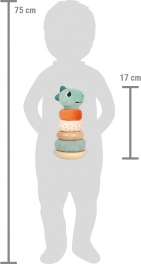 Questo giocattolo motorio a forma di torre oscillante con quattro anelli colorati e8 ideale per il riconoscimento di dimensioni e colori. La torre include un durevole bastone centrale sicuro e una testa di dinosauro sorridente. La base arrotondata garantisce stabilite0, mentre gli anelli in tessuto e legno variegati affascinano con il loro design.