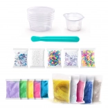 - 5 bustine di slime colorati, 5 bustine di slime fai-da-te, 5 tipi di decorazioni per slime, 5 x vasetti, spatola per mescolare< /dd>