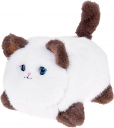 Il gatto è completamente bianco con zampe e coda marroni. Le dimensioni sono: lunghezza 25 cm, larghezza 17 cm, altezza con coda 24 cm, senza coda 18 cm.