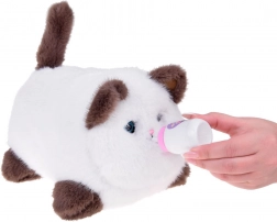 Il gatto Puszek è un giocattolo di peluche morbido che reagisce al tocco. Quando accarezzato, emette vari effetti sonori di miagolio e fusa, muove la coda e batte le palpebre. Il pacchetto include anche una piccola bottiglia che puoi avvicinare alla bocca per sentire suoni che ricordano il leccare dei gatti.