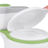 Il pulsante sul serbatoio attiva un suono realistico di sciacquone che avvicina i bambini all’uso reale del WC e favorisce un allenamento regolare.