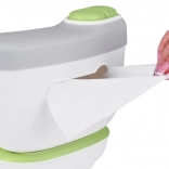 Grazie al secchiello interno estraibile, la manutenzione richiede solo un attimo. Il dispenser per salviette integrato aiuta a costruire abitudini igieniche fin dalla tenera età e la spazzolina per la pulizia inclusa facilita la cura quotidiana.