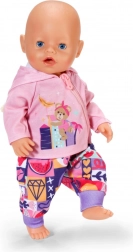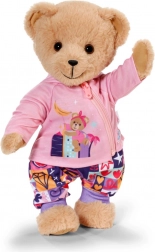 Con questo set di abbigliamento darai a bambola e BABY born Teddy comfort e stile per ogni avventura. La felpa rosa con zip, cappuccio e adorabili orecchiette è facile da indossare, la maglietta lilla a maniche lunghe con orsetto è morbidissima e i pantaloni con fantasia patchwork colorata assicurano comodità durante il gioco.