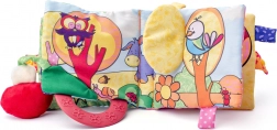 Il libro di stoffa offre anche elementi che possono essere ribaltati, inseriti e masticati, il che stimola i sensi del bambino e incoraggia l'esplorazione del mondo circostante. È progettato per essere sicuro e resistente per il gioco quotidiano.