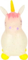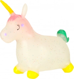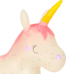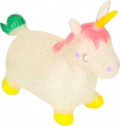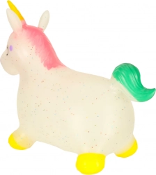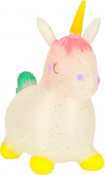 Realizzato in gomma flessibile e resistente, l'unicorno saltellante è morbido e elastico, con sicurezza certificata.