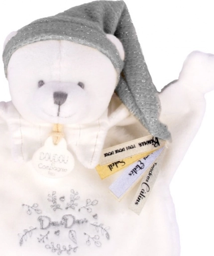 L'orsetto di peluche del marchio Doudou è un regalo ideale per i neonati. L'orsetto è dotato di un adorabile cappellino grigio e morbide zampette bianche che ricordano piccole pantofole.