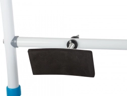 Il robusto telaio in metallo garantisce resistenza e durevolezza. Le impugnature antiscivolo aumentano il comfort, mentre i piedini stabilizzano il maniglione al suolo.