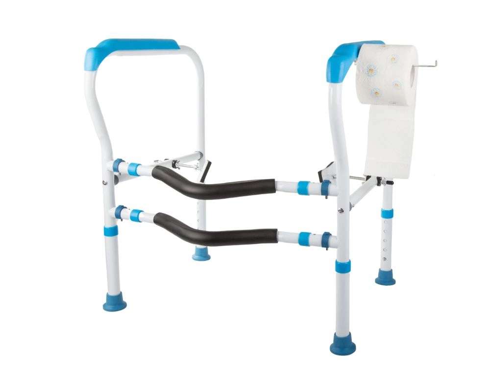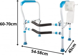 Offriamo un univerzale maniglione per WC con altezza e larghezza regolabili, ideale per diverse dimensioni di toilettes. La costruzione assicura stabilite0 e sicurezza durante l'uso grazie ai piedini e alle impugnature antiscivolo.