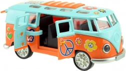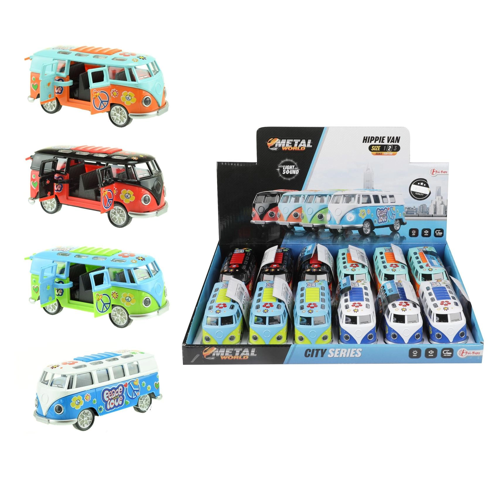 Scopri il mini autobus retrò che colpisce a prima vista con lo stile “hippie” colorato e sorprende con gli effetti una volta avviato. Basta tirarlo indietro e rilasciare: il meccanismo a inerzia garantisce una corsa scattante, mentre le luci e il suono del motore amplificano l'esperienza.