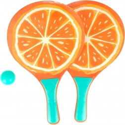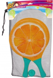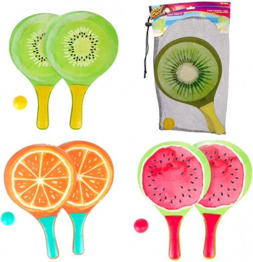 Goditi l’estate al massimo con un elegante set da beach tennis a tema frutta. Include 2 racchette leggere e 1 pallina in un pratico sacchetto a rete per il trasporto. Le stampe colorate di kiwi, anguria e arancia invogliano a giocare in spiaggia, in giardino o al parco. Perfetto per divertimento in famiglia, sviluppo della coordinazione e movimento all’aria aperta.