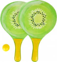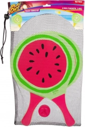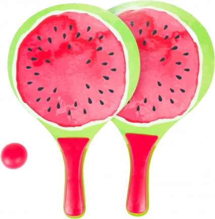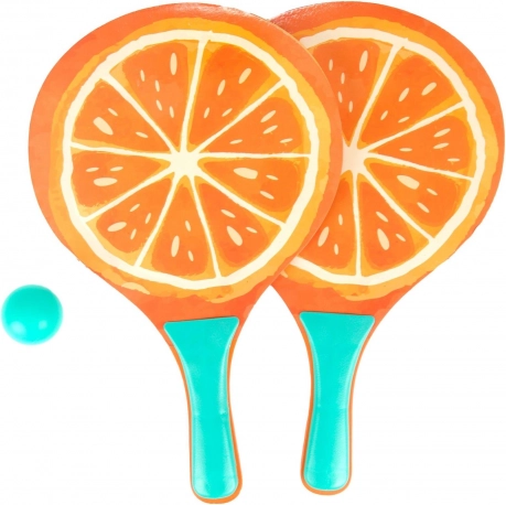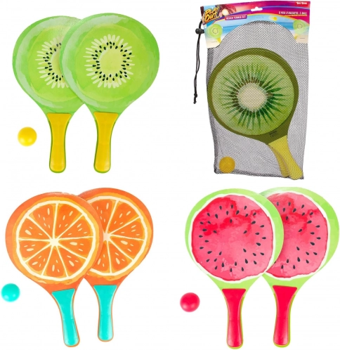 Gioca ovunque – in spiaggia, in giardino o al campo. I motivi di anguria, kiwi e arancia aumentano la visibilità durante il gioco e trasmettono una gioiosa atmosfera estiva. Il set è perfetto per allenare riflessi, coordinazione occhio–mano e delicatezza nel colpo.