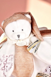 Nastri di raso con messaggi affettuosi in francese ornano il cappello e la copertina, aggiungendo a ogni abbraccio un tocco ancora più tenero. Il giocattolo è confezionato in una lussuosa scatola regalo illuminata all'interno da LED.