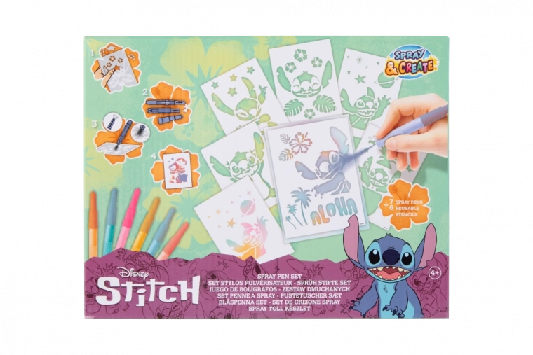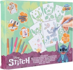 Scopri il fantastico divertimento creativo con il grande set di pittura ispirato al personaggio preferito Stitch! Questo set include speciali pennarelli soffianti, che permettono ai bambini di creare facilmente immagini originali.