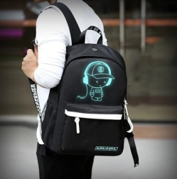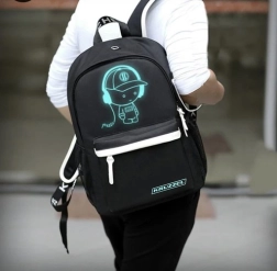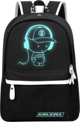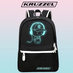 Pratico zaino urbano e scolastico KRUZZEL con motivo luminoso, porta USB integrata e uscita per cuffie da 3,5 mm. Offre imbottiture MESH per una migliore ventilazione, numerose tasche per un'organizzazione ordinata e una capacità di 19 l. Inclusi astuccio, prolunga USB e da 3,5 mm e lucchetto a combinazione – ideale per la scuola, il lavoro e i viaggi.