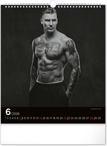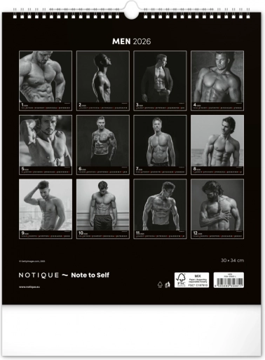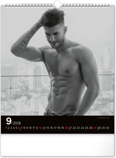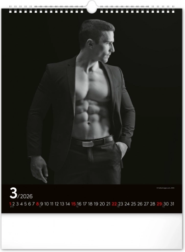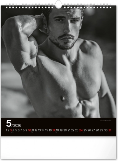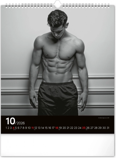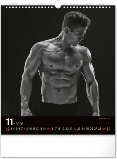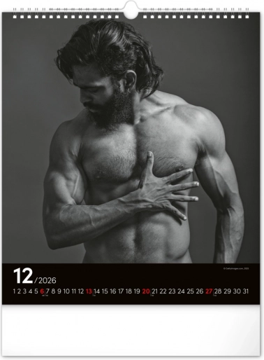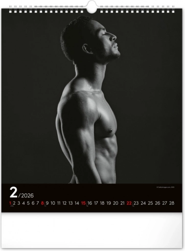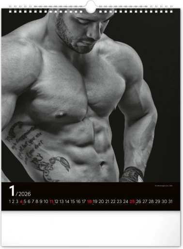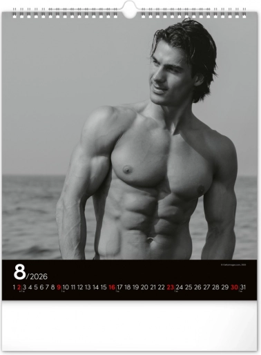 Questo calendario da parete ti affascinerà con fotografie in bianco e nero che catturano la bellezza e la forza di uomini attraenti in tutta la loro gloria. Design elegante con un calendario semplice su sfondo nero che darà stile al tuo spazio.