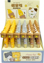 La penna ha una presa comoda, si pianta bene in mano e scrive fluidamente, rendendo l'uso quotidiano un piacere. La maggiore attrazione è il meccanismo a clic: premendo la parte superiore della penna non solo si espelle la cartuccia, ma il gatto si alza dalla scatola. Questa soluzione divertente e funzionale rende ogni scrittura un piacere. I motivi interessanti e i colori pastello fanno della penna un ottimo regalo o parte del corredo scolastico.