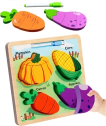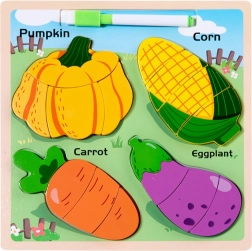 Questo puzzle in legno offre ai bambini un'opportunità eccellente per apprendere le forme e allenare la motricità fine. Contiene quattro tipi di verdure preferite: zucca, mais, carota e melanzana. Ogni elemento è suddiviso in parti più piccole che i bambini assemblano nelle aree corrispondenti del piano.