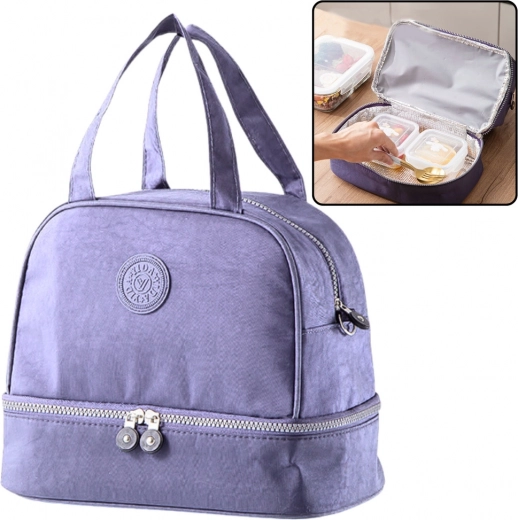 Grazie alla costruzione a doppio strato e allo strato termico isolante, la borsa mantiene efficacemente la temperatura dei prodotti memorizzati, siano essi cibi caldi o bevande fredde e snack. Il comparto inferiore principale è spazioso e può facilmente ospitare lunch box, frutta, bevande, bottiglie o tazze termiche. La tasca superiore è destinata a piccoli oggetti come barrette, yogurt, tovaglioli o posate, permettendo di mantenere il contenuto organizzato e facilmente accessibile.