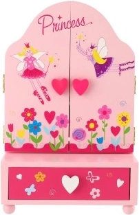 La toeletta in legno con portagioie Princess è un’ottima aggiunta alla cameretta dei bambini. Lo specchio ovale centrale è completato da due ante laterali per una comoda regolazione dell’angolo. Nella parte inferiore si trova un pratico cassetto dove i bambini possono riporre i loro piccoli tesori. Le delicate decorazioni con fate, fiori e cuoricini stimolano la fantasia e la gioia del gioco.