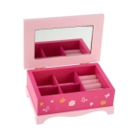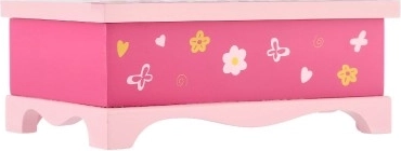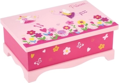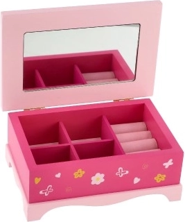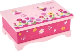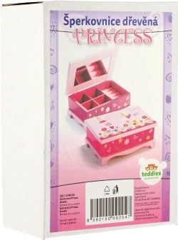 Questa scatola portagioie Princess in legno rosa unisce un aspetto magico a un’organizzazione pratica. Grazie allo specchio sul lato interno del coperchio e ai cinque scomparti studiati, aiuta a mantenere gioielli e piccoli oggetti ben in ordine. Il delicato decoro floreale e la scritta Princess creano un’atmosfera da fiaba, perfetta per la cameretta dei bambini.