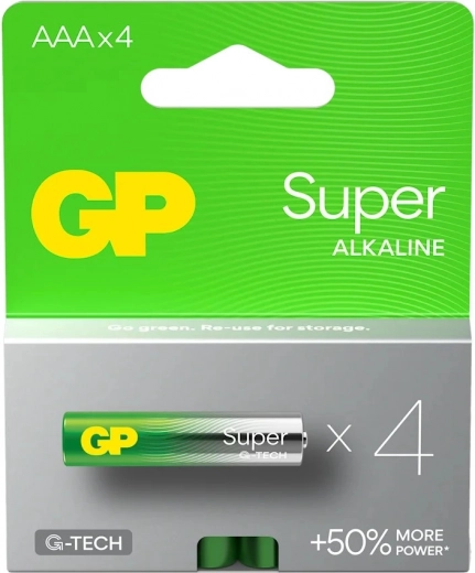 Le batterie alcaline GP Super LR03/AAA offrono durata migliorata e protezione contro le perdite, tutto in un imballaggio ecologico.