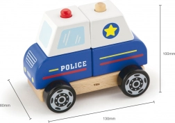 Il giocattolo funziona come puzzle, costruzione e classica macchinina a ruote. Dopo il montaggio i bambini potranno vivere inseguimenti e storie da veri poliziotti.
