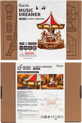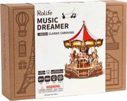 Crea un pezzo di nostalgia con questo puzzle di legno 3D del carosello. Costruisci la tua scatola musicale con illuminazione a LED e 4 melodie classiche senza l'uso di colla. Il carosello sarà un'aggiunta unica al tuo arredamento o un regalo originale.