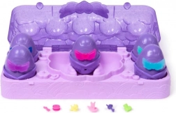 Apri il coperchio scintillante, rimuovi le alucce dagli ovetti, riempi il nido d’acqua e osserva come in pochi secondi l’acqua si colora e i tuoi nuovi amici si rivelano. Le tonalità neon ispirate ai colori di mezzanotte trasformano ogni schiusa in un momento magico.