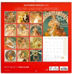 Calendario per appunti Alfons Mucha 2026 offre bellissime riproduzioni delle opere del maestro ceco dell'Art Nouveau. Ideale per gli amanti dell'arte e per pianificare i compiti quotidiani.