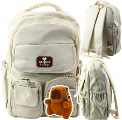 L'aspetto dello zaino è completato da spille decorative con motivi di capibara e un ciondolo di peluche a forma di capibara, che il bambino può attaccare a proprio piacimento per personalizzare il proprio zaino.
