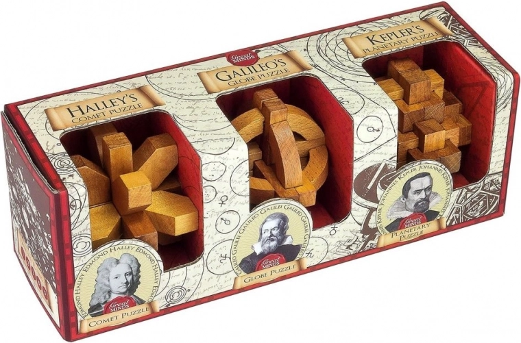 Scoprite un divertimento intelligente con il set PROFESSOR PUZZLE GREAT MINDS3 rompicapi in legno ispirati a figure e scoperte storiche. Ogni pezzo metterà alla prova la vostra logica, la pazienza e la motricità fine, mentre vi immergete nelle storie che hanno plasmato il mondo della scienza: Cometa di Halley, Globo di Galileo e Pianeta di Keplero.