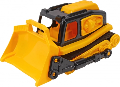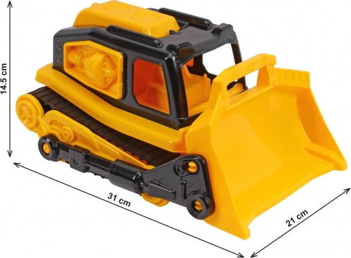 Bulldozer in plastica robusto e realistico, lungo 30 cm, che farà felici tutti i piccoli costruttori. Grazie ai cingoli e alla benna anteriore funzionante offre un gioco fantastico in casa e all’aperto. È leggero, resistente e adatto anche alla sabbia. La ruota libera garantisce movimento fluido e facile controllo per bambini dai 2 anni.