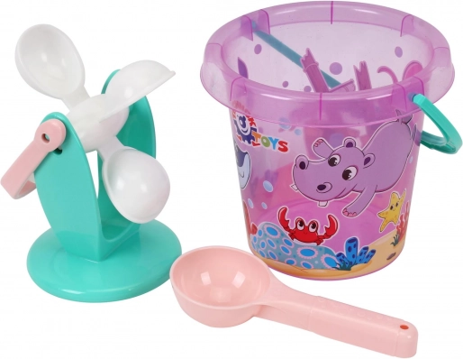 Secchiello leggero e resistente con stampa di animaletti marini per trasportare acqua e sabbia. Dimensioni ideali per le piccole mani dei bambini.