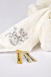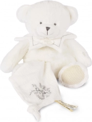 L'orsetto è dotato di una copertina che può essere facilmente nascosta nel suo pancino, il che è molto pratico durante i viaggi o per riporlo. Doudou è decorato con delicati ricami e nastri di raso con scritte francesi, che aggiungono dolcezza ad ogni coccola.
