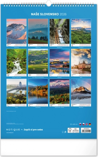 Calendario da muro Náš Slovensko 2026 con fotografie e calendario slovacco. Ideale per gli amanti delle bellezze della Slovacchia.
