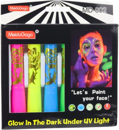 Set di marcatori fluorescenti UV per pittura del viso 6 pezzi